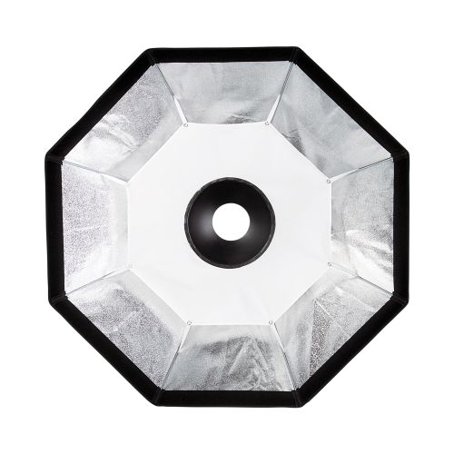 Aufhellung und Führungslicht in einem! Die typischen Ringblitzeigenschaften bleiben erhalten, die Lichtführung wird aber deutlich weicher. Durch die leichte Stoffbauweise ist die Box ebenso leicht in der Handhabung. Die Diffusoren sind herausnehmbar, dadurch ist die Softbox in der Lichtwirkung variabel.