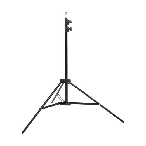 Leichtes Alu-Stativ, dessen Höhe von 101 bis 237 cm über 3 luftgedämpfte Auszüge einstellbar ist. Belastbar bis 5 kg. Sie können bis zu 3 Stative zum Transport aneinanderklipsen.