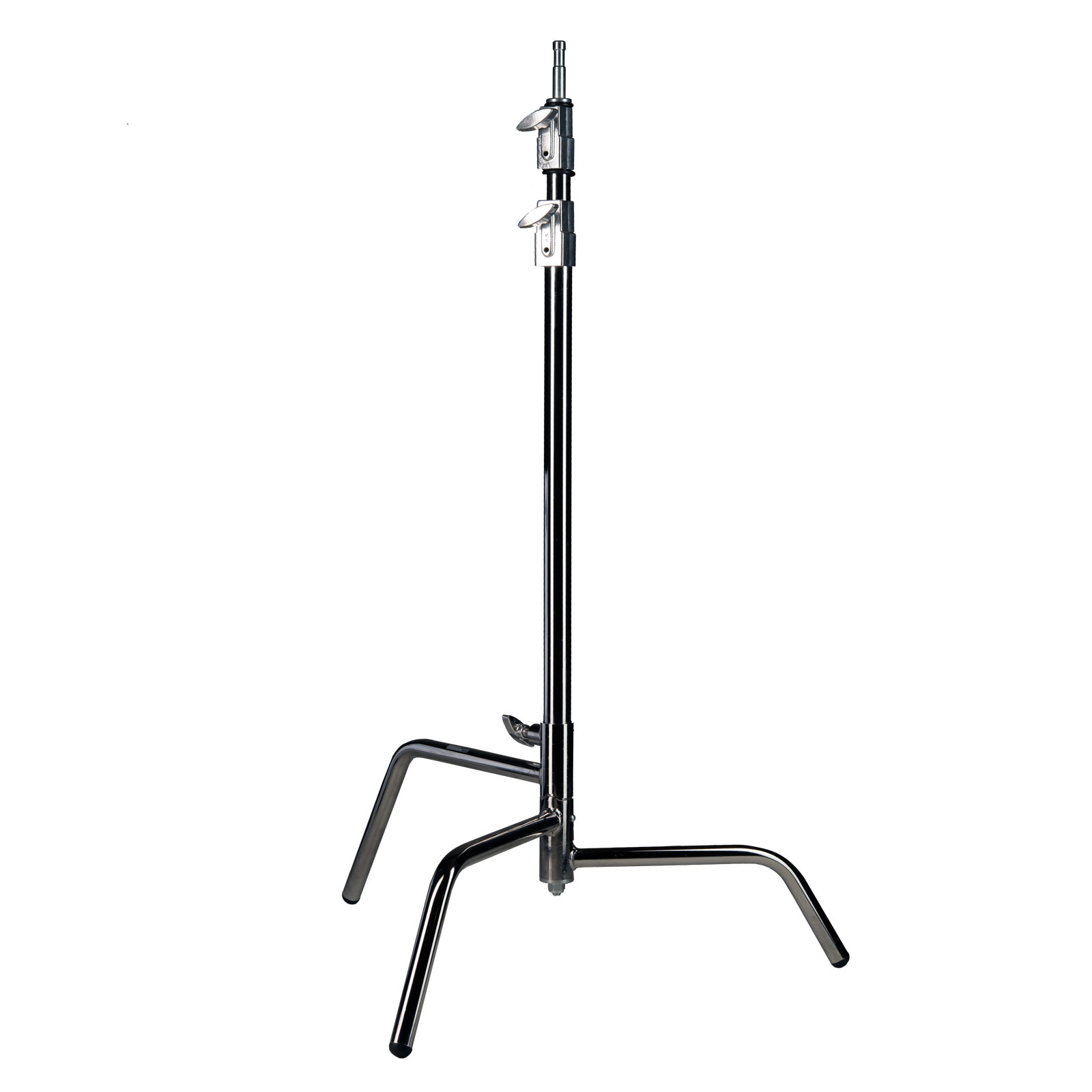 Die C-Stands sind in zwei unterschiedlichen Varianten verfügbar. Die Belastung liegt jeweils bei 10 kg. Im Packmaß und der max. erreichbaren Höhe liegen die Unterschiede der beiden Stativvarianten.