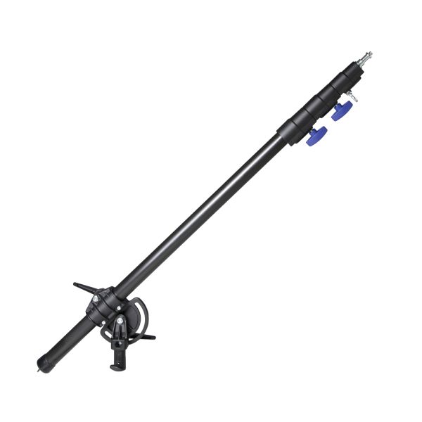Der Ausleger ist ausziehbar, von 110 cm bis max. 255 cm. Er wird inkl. Sandsack (Art. 8000266) und Pivoting Clamp ( = Neigegelenk, Art. 9802100) geliefert. Die maximale Belastbarkeit bei vollem Auszug beträgt 2 kg, ist aber auch immer abhängig vom Basisstativ. Wir empfehlen Ihnen, einen zweiten Sandsack oder ein entsprechendes Bleigewicht unten am Basisstativ anzubringen, um die Standfestigkeit zu erhöhen.