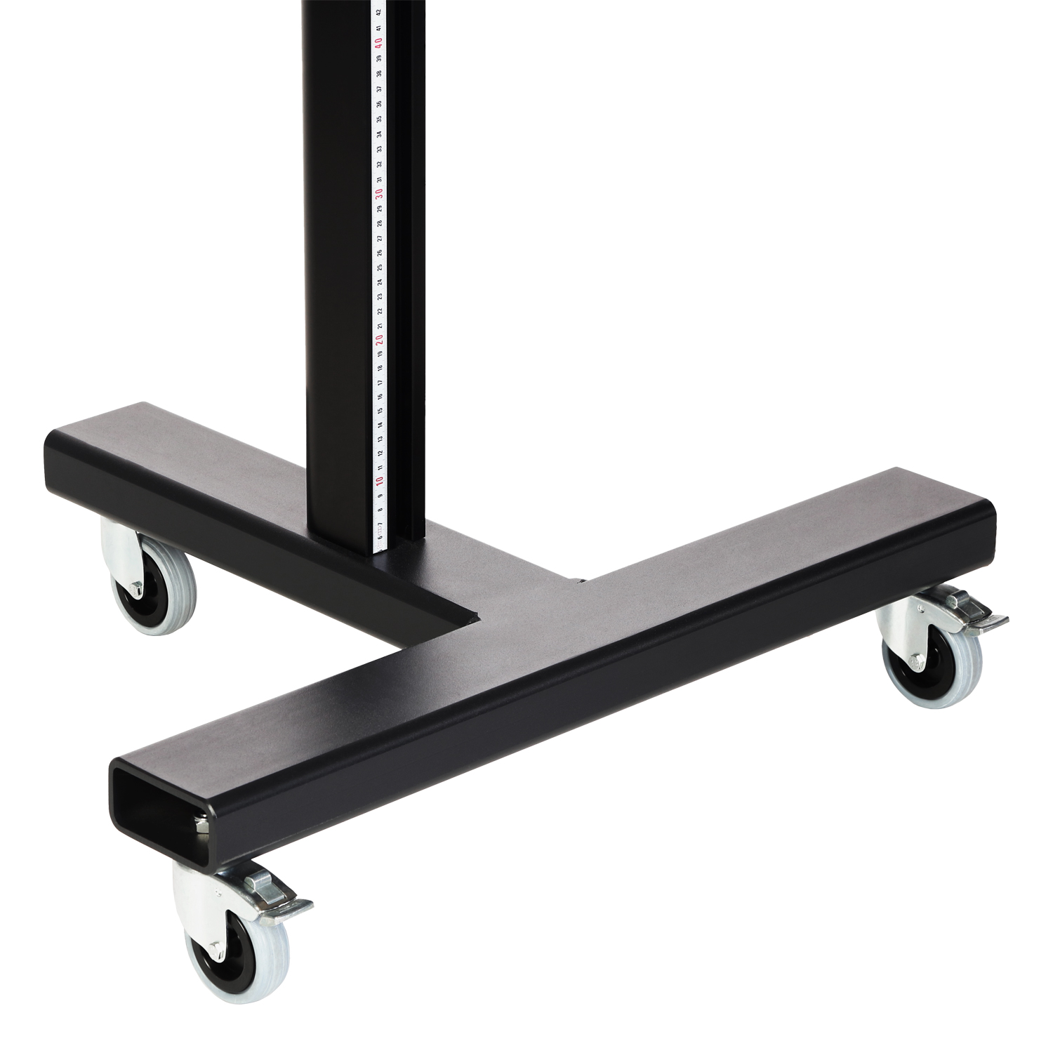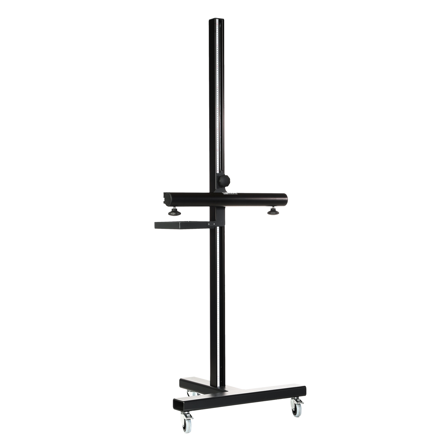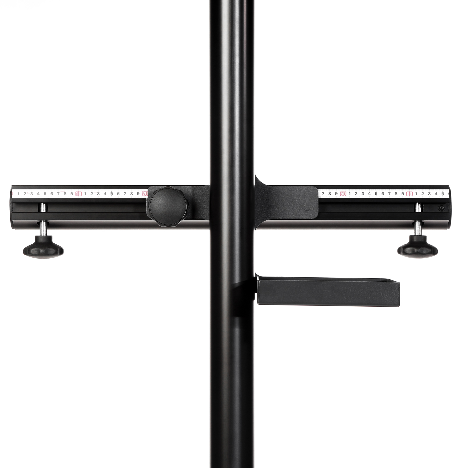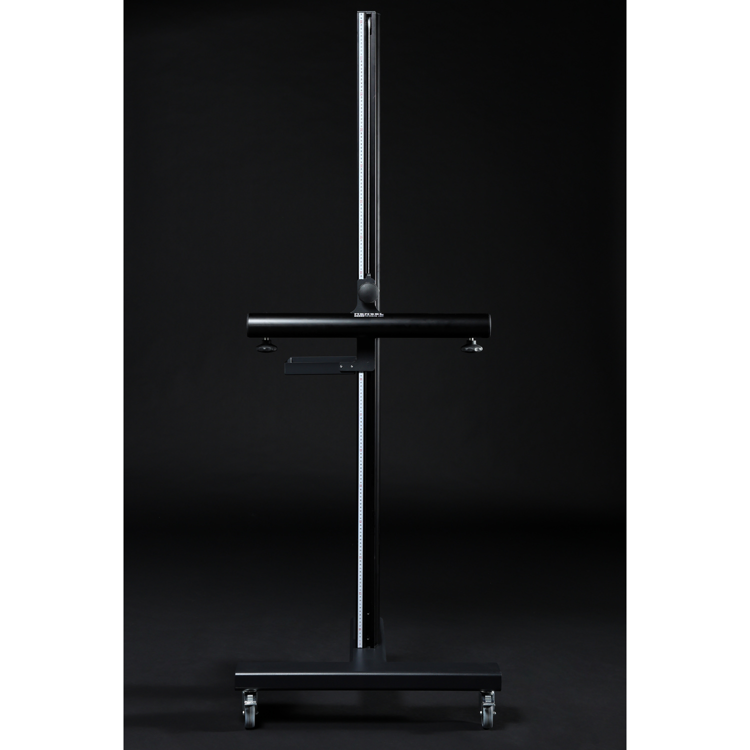 Ein schwerer T-Fuß sorgt mit zwei feststellbaren Rollen für sicheren Stand, die stabile Ablage für Ordnung und Übersicht. Der in der Säule integrierte Gewichtsausgleich ( 8kg, optional auch mehr) ermöglicht auch bei schweren Kameras komfortables Arbeiten.