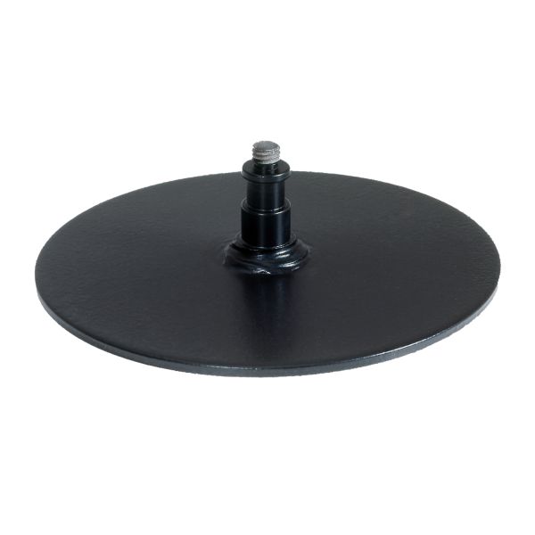Leichtes, rundes Metallstativ mit einem 3/8"-Stativzapfen und einem Durchmesser von 15 cm.
