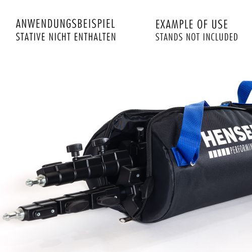 Der sichere Schutz für Blitz- und/oder Kamerastative! Die Stativtasche verfügt an beiden Enden über eine zusätzliche Innenverstärkung zum Schutz gegen ein Durchstoßen des Stoffs mit dem Stativkopf. Die Tasche ist bestens geeignet z.B. für zwei Alu-Klappstative Hensel VI (Art. 223) und für viele weitere Blitz- und Kamerastative.