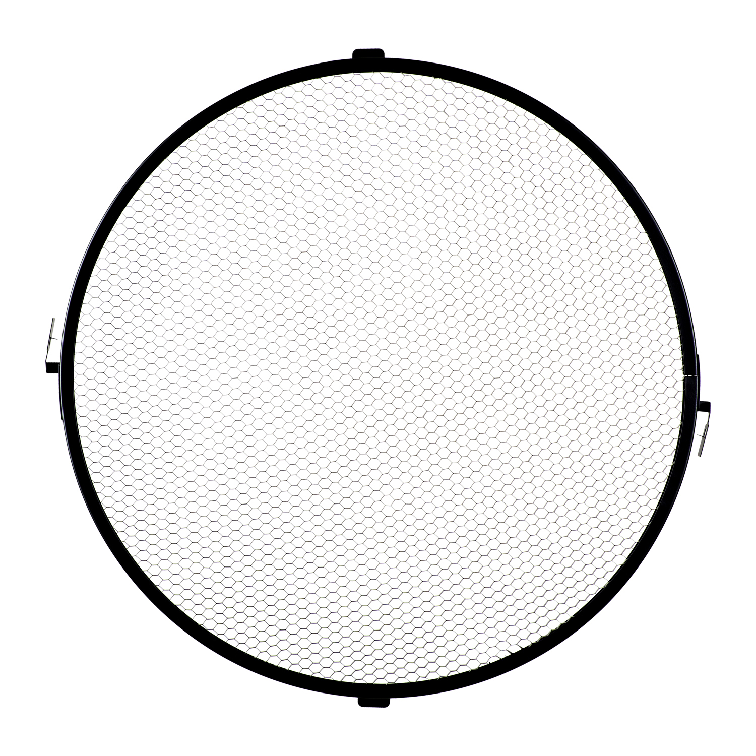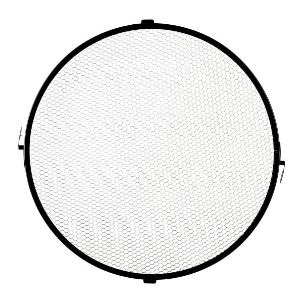 Ideal für den weißen und silbernen Beauty Dish. Verstärkt den Lichtabfall und sorgt für eine plastischere Ausleuchtung. Die integrierten Klemmen halten die Wabe auch sicher bei stärkerer Neigung des Reflektors. Größerer Leuchtwinkel als Wabe Nr. 3.